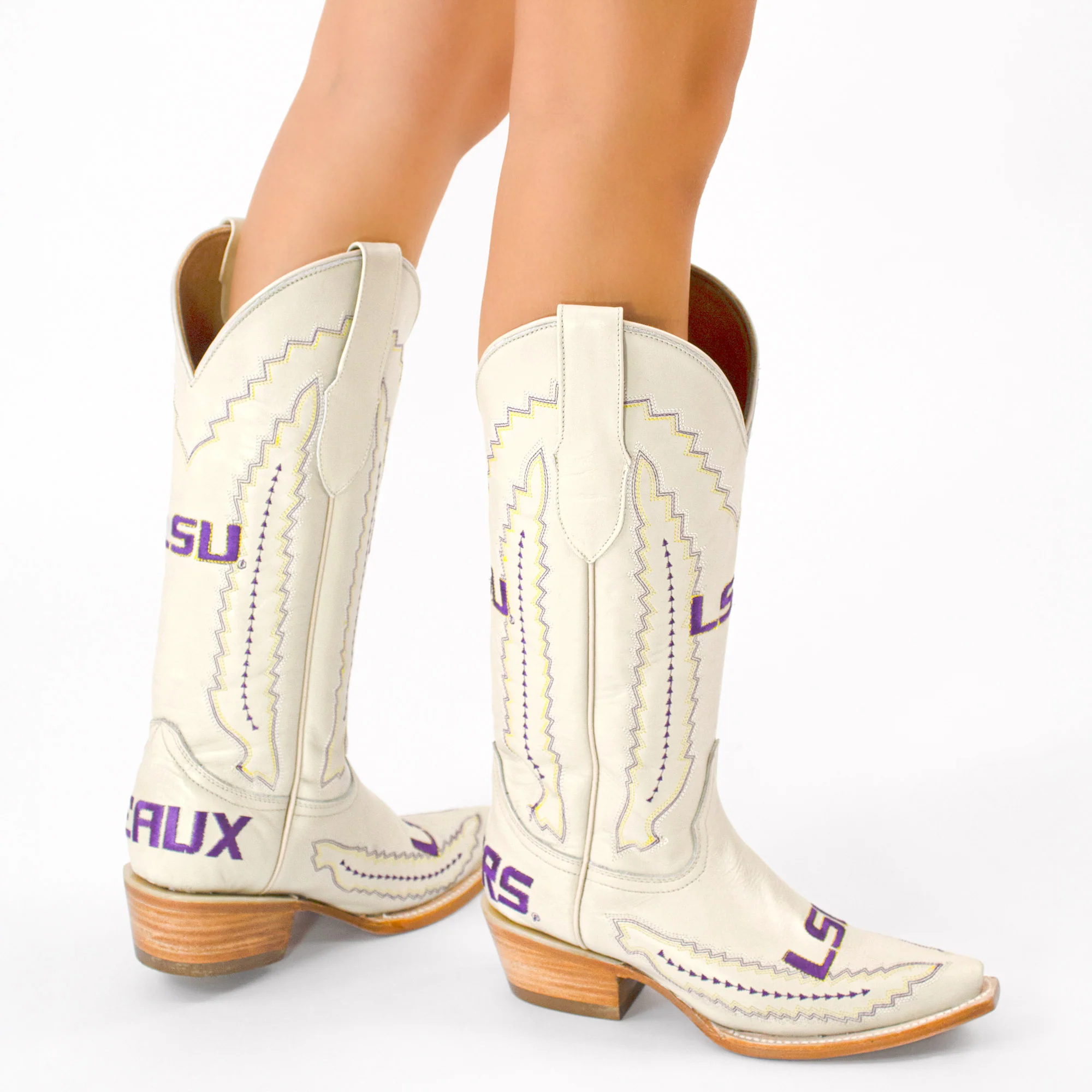 Our best seller for a reason, The Naomi is the perfect mix of school pride and Southern charm. Featuring vibrant LSU purple and gold stitch patterns and officially licensed logos, these boots are designed to stand out on game day and beyond. More than just footwear, they’re a bold expression of your Tigers spirit with every step. Geaux Tigers!
