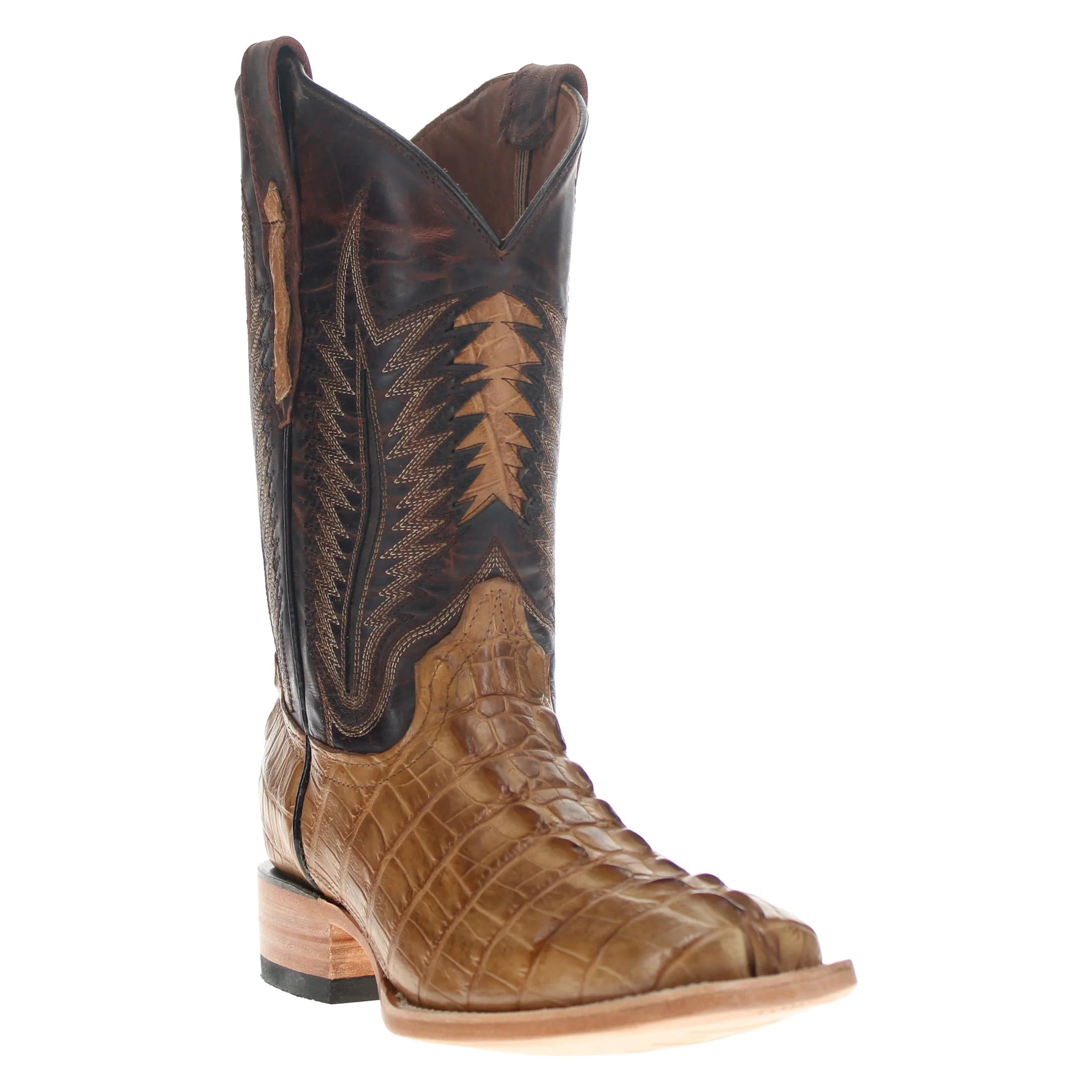 Step into a world where tradition meets modernity with our broad square toe Hornback American Alligator Boots- Paxton. The perfect boots for those who appreciate quality, attention to detail, and a modern twist on the classic cowboy boot. These boots have a tail cut Hornback American Alligator vamp, an American Alligator inlaid upper, and laser-cut details on the upper creating a stylish, unique look.